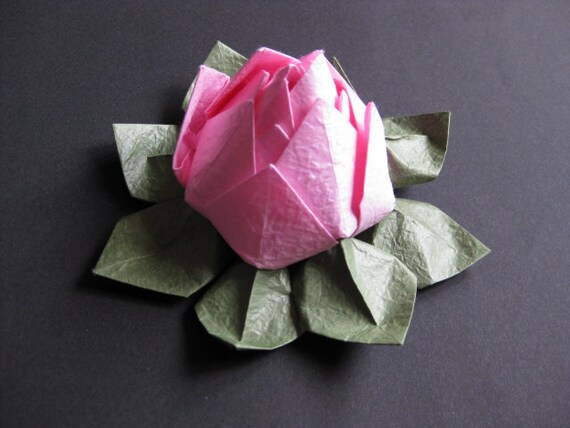 Origami Lotus Flower Pink Japanese Special Momigami Anniversary Hostess Gift Birthday Gift Table Decor Get Well Handmade Wedding